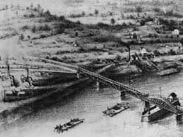 Fifteen days after the bridge’s gala opening, the steamboat Effie Afton struck one of its piers. A stove on the boat overturned, and the Effie Afton burned to the waterline. The bridge caught fire and suffered extensive damage. News of the bridge fire prompted riverboats all along the Mississippi to ring bells and blow whistles in celebration.